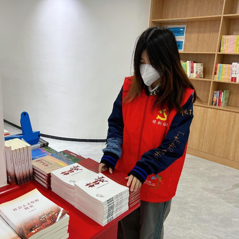 王豪在清扫院子 发展对象王薇同学协助社区工作人员整理图书,落实为人民服务的精神。经过整理,图书室的图书被摆放的整齐有序,这大大提升了他人阅读的兴趣。“书籍是人类进步的阶梯。”书是智慧的源泉,书是知识的海洋,书是想象的翅膀,书是生活的方向盘。只有不断学习,党性才能得以提高,思想觉悟才能得以升华。