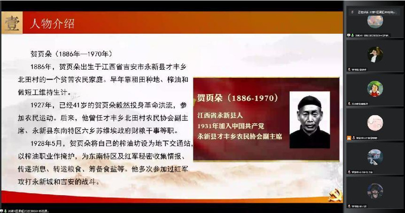 党史故事分享环节 在学习会分享环节中,组织部和党章学习小组给我们分享了为人民利益而服务的平凡英雄张思德同志和写下了现存最早的入党誓词的同志贺页朵的革命故事。英雄模范,是一个时代最鲜明的精神坐标。每一次对英雄模范的缅怀,都是一次唤醒人生意义的自我点名;每一次对英模精神的仰望,都是依次砥砺责任担当的庄重宣誓。在一代又一代中华儿女为祖国发展繁荣而奋斗的征途中,正是这一颗颗“最亮的星”装点了今日中国的灿烂之星,铸就了中华民族自强不息的民族魂,凝练成我们年青一代需不断践行的伟大建党精神,接力党的伟大事业,续青春荣光。