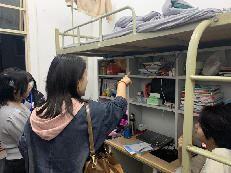 党总支欧敏副书记检查宿舍 本次检查内容除了宿舍整体卫生状况,个人卫生情况外,还包括宿舍用电安全等。在本次检查工作中,欧敏副书记以及值班老师指出同学们所做不足之处,亲切地与学生就如何创建文明宿舍进行交谈,对宿舍各项安全隐患进行了细致地排查,检查了宿舍消毒和卫生清洁工作。同时,欧敏副书记细心叮嘱同学们要注意宿舍清洁,加强身体锻炼。