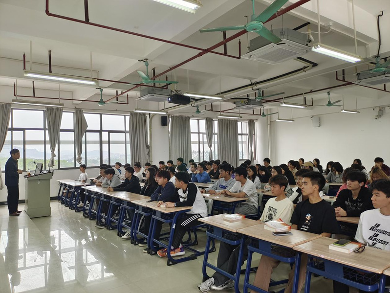 授课现场 紧接着,彭卫东带领同学们学习学校党委副书记、校长何汉武对推进学校高质量发展的“九大举措”以及对全体同学提出殷切期望:一是要有较高的政治素质,二是较好的身体素质,三是较强的心理素质,四是丰富的文化知识。