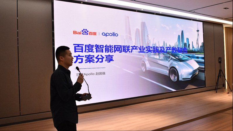 广州市大湾区虚拟现实研究院院长王立群发言 随后,百度智能交通广东省人才生态高级方案经理赵国强为我们分享了百度阿波罗的功能,他提出了各国积极发展智能网联以及现今行业发展的人才需求持续增长,传统专业转型趋势明显。重点提出要培养相对应的人才、建设相关教导科研平台两点产教融合建设方案,为智能网联的发展提供更加强有力的支撑。