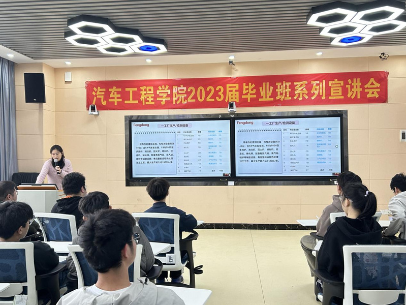 宣讲会现场 为了让学生更好的了解企业信息,汽车工程学院特此在明德楼1-316组织开展汽车工程学院2023届毕业班系列宣讲会,广州鑫润丰东热处理有限公司、江苏康众汽配有限公司等六家企业分别详细地介绍企业信息,从企业起源、工作待遇、福利以及招聘信息等进行详细讲解,使广大毕业生更深入了解企业的运营情况。与此同时,同学们也积极提出疑问,发表对未来职业的期望。