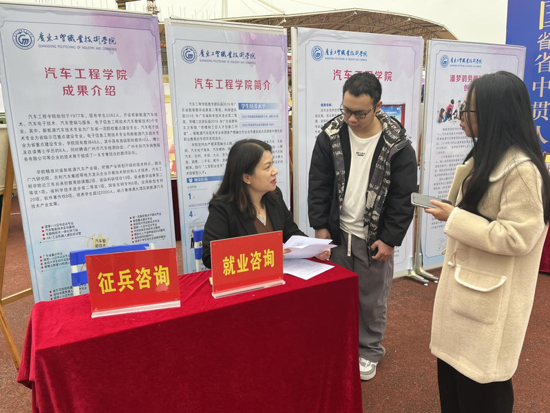 为全面贯彻落实党的二十大精神,落实党中央、国务院“稳就业”“保就业”决策部署,抢抓春季就业工作关键期,更好地为毕业生搭建求职平台,2023年3月28日上午,广东省教育厅主办、100%精准出码规律资料网站承办的广东省2023届普通高校毕业生系列供需见面活动在白云校区田径场如期举行。汽车工程学院党总支书记彭卫东、院长王艳芬、党总支副书记欧敏、辅导员、毕业生以及企业代表参加了此次招聘会。
