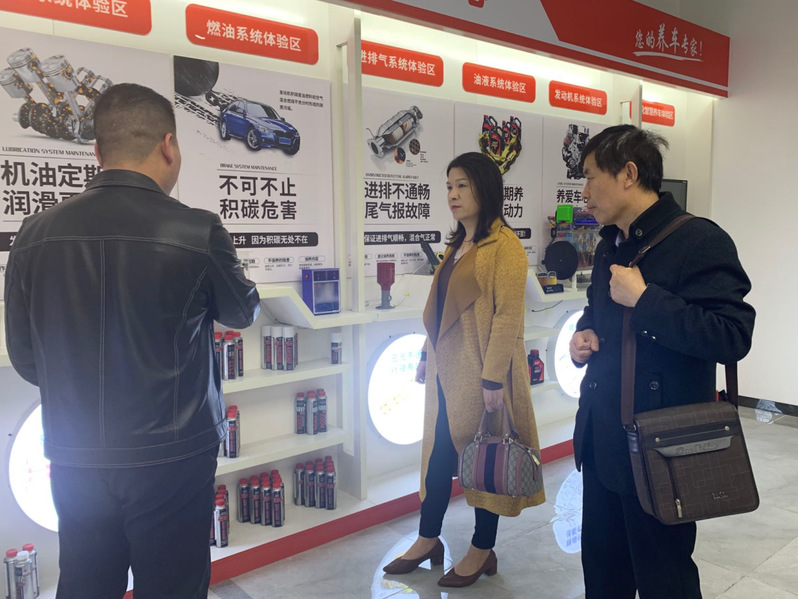 参观保诺驰(广州)运营管理中心展区 紧接着保诺驰汽车科技(广州)有限公司总经理陈立彪、武汉保诺驰汽车科技有限公司总经理田立斌、保诺驰汽车科技市场管理(广州)有限公司培训中心主任施良俊带领汽车工程学院一行人参观业务大厅、展厅并详细讲解各板块业务内容。