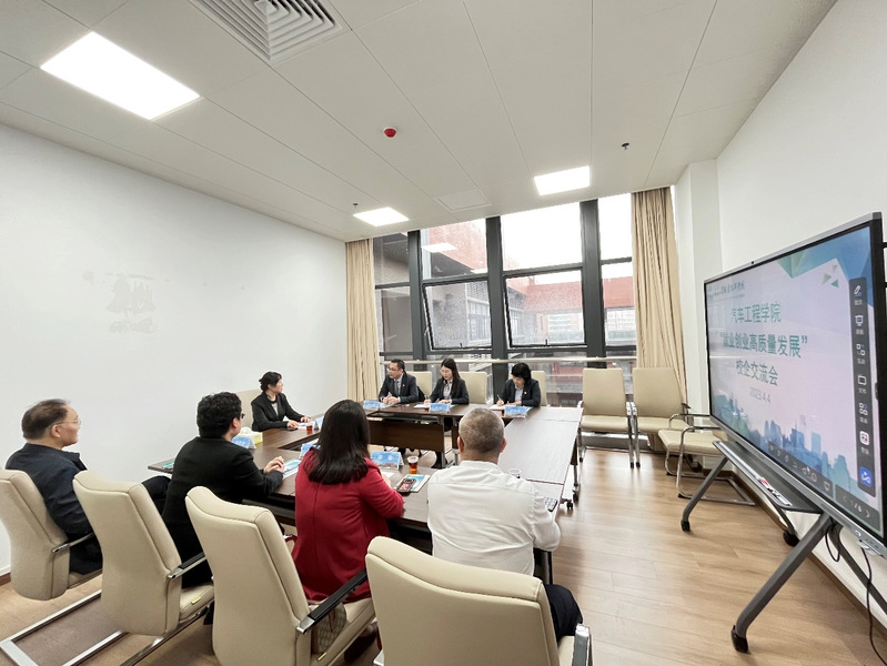 2023年4月4日上午,学校创新创业学院与汽车工程学院在图书信息中心6楼610会议室联合召开了就业创业校企交流会,校党委副书记赵红、创新创业学院常务副院长侯勇强、创新创业学院副院长王坤明、汽车工程学院副书记欧敏、汽车工程学院创新创业专员陈宏伟以及广州广物君迪汽车销售贸易有限公司总经理邓志辉、财务总监刘小茵以及人事经理李四华出席了本次的交流会。本次会议由王坤明主持。 会议初始,主持人介绍到场嘉宾,并热烈欢迎广州市广物君迪汽车销售贸易有限公司的到来,希望能与企业有更加密切的合作联系,以此来解决“慢就业”“缓就业”的严重现象。