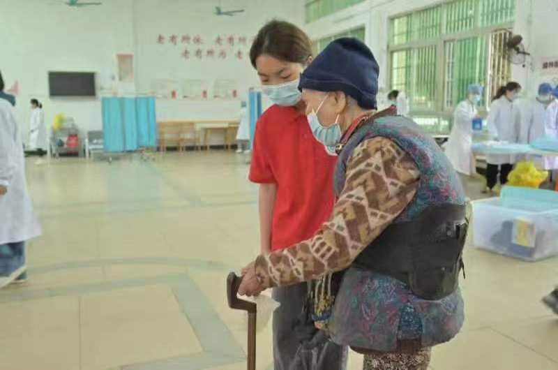 志愿者服务老人现场 为保证此次体检有序进行,22级青协成员提前到达现场,充分了解此次体检的相关流程。体检于早上八点半开始,此次体检包括测血压、心电图、B超、身高体重、视力、五官等各类项目,医护人员为老人逐项进行检查登记,志愿者则负责做好搀扶老人,协助老人们顺利完成各项检查,医护人员与志愿者各司其职,使现场得以有条不紊。