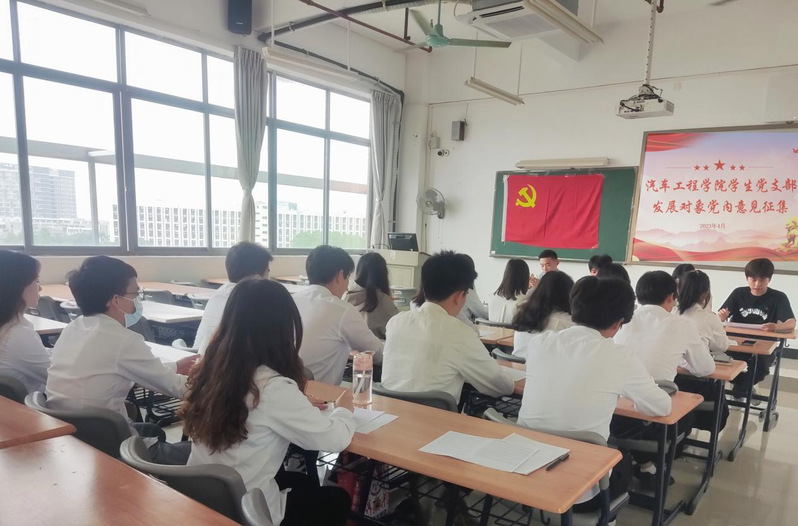 汽车工程学院学生党支部于2023年4月13日下午2点在明德楼1-616召开了关于本次发展党员的党内意见征集会议。本次会议由辅导员陈玉华主持,支部全体在校党员参与。