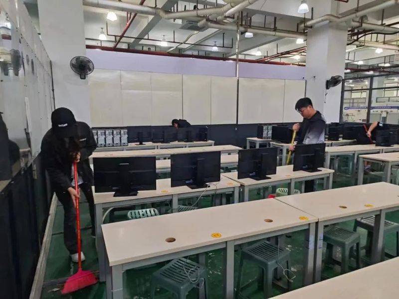 活动现场 本次活动由学生党支部的党员同志带领第40期入党积极分子培训班成员前往明德楼和实训楼进行课室卫生清洁活动。他们手持扫帚、簸箕等工具有条不紊地对明德楼和实训楼等各个教室进行清洁打扫,在清扫过程中,各小组成员配合默契,互帮互助,以饱满精神参与到活动中,不偷懒、不抱怨,同学们认真负责的态度展现了入党积极分子良好的精神风貌。