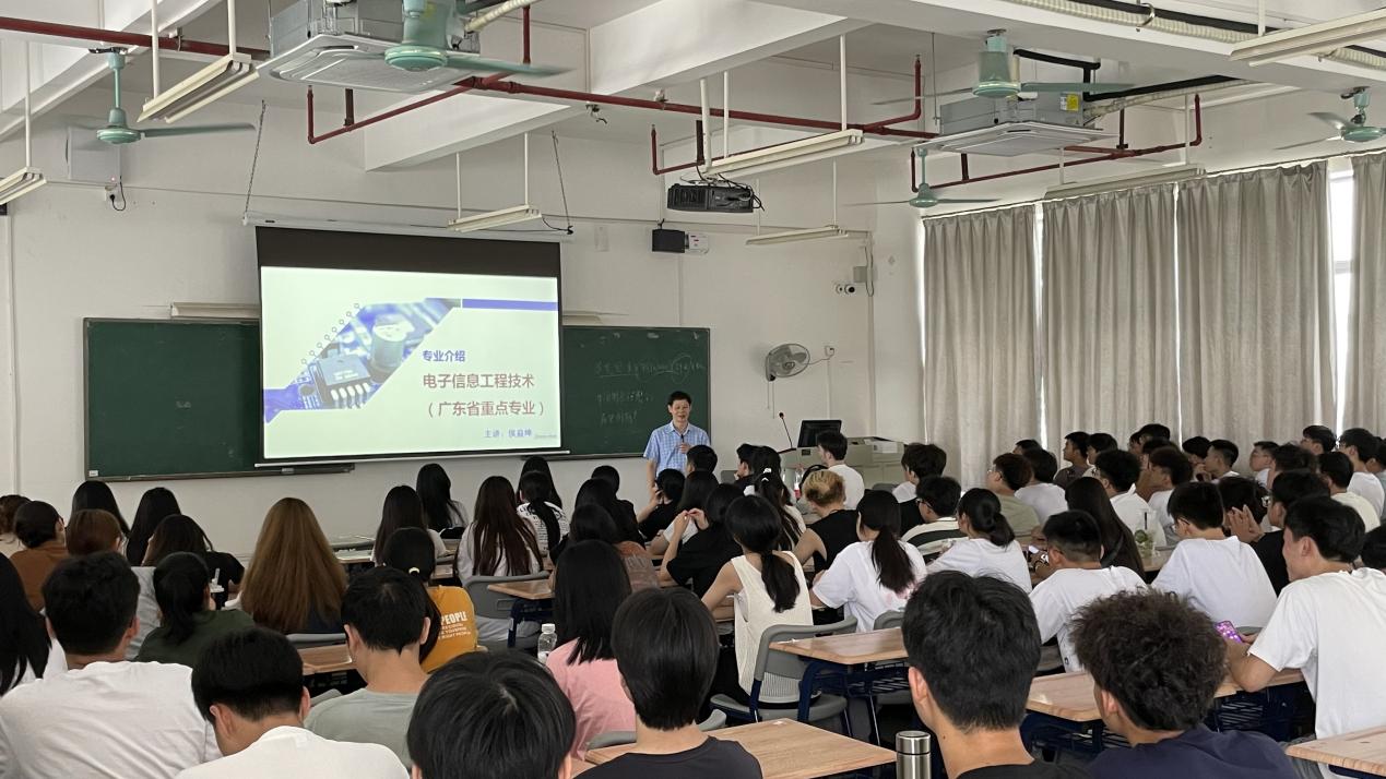 图七:电子信息工程技术专任教师黄丽英为学生做专业介绍
