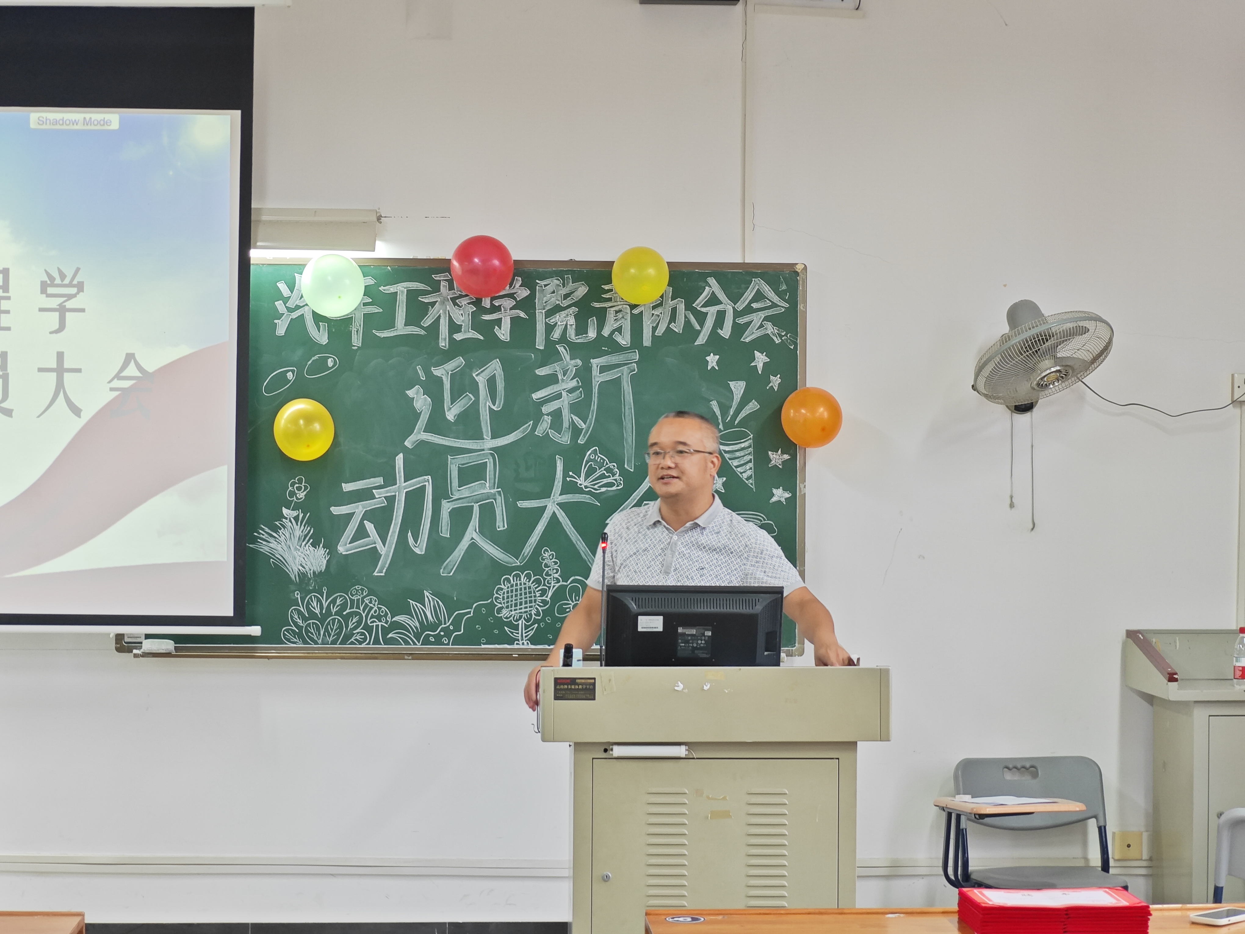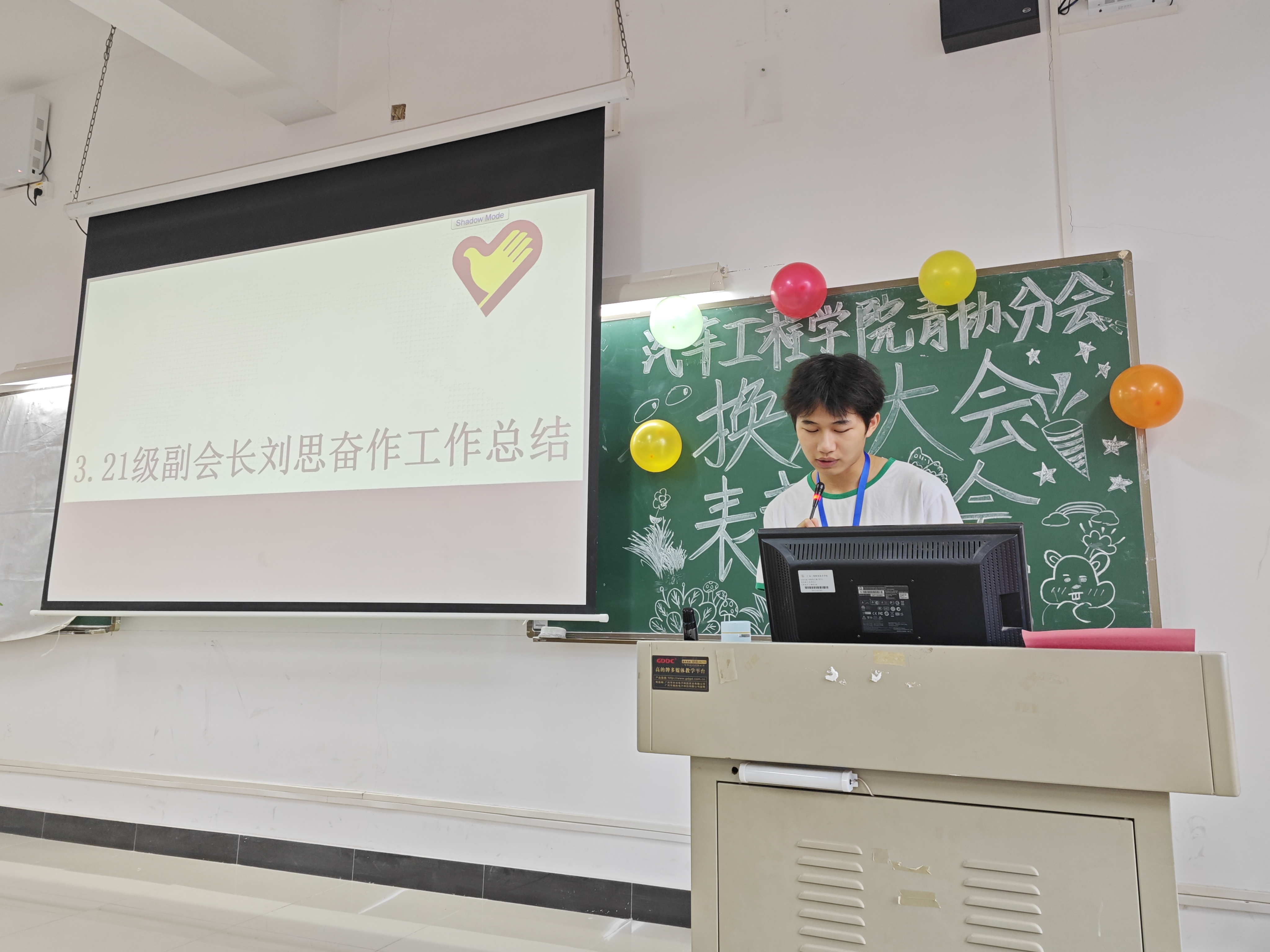 汽车工程学院青协分会副会长刘思奋进行发言 大会第一项,观看汽院青协分会过去一年来的总结视频,接着由21级副会长刘思奋代表发言,感谢各班青协小队长配合志愿活动举行,希望22级的青协成员不忘初心,砥砺前行,提高举办活动质量,将青协优良传统发扬光大。大会第二项,由陈宏伟老师发言。首先,感谢兄弟院系青协对我院青协工作给予的帮助。接着,提出对学院志愿活动制度管理优化,做到活动合规,管理合理,奖励合意。紧接着,对青协成员强调活动创新的重要性,强调举办活动需保证安全性,最后,希望青协成员在各项工作中能有所蜕变,青协的发展越来越好。