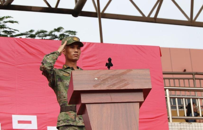 最后,军训团团长廖钧宇强调,军训是进入学校的第一堂课,也是对新生们的一个考验,希望新生们能用军人的标准严格要求自己,不怕吃苦,不轻易喊累,以饱满的热情、昂扬的斗志投入到训练中去,圆满完成此次军训任务,训出精彩人生,成就更好的自己。