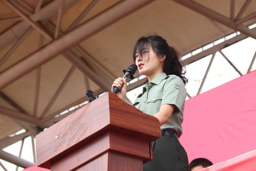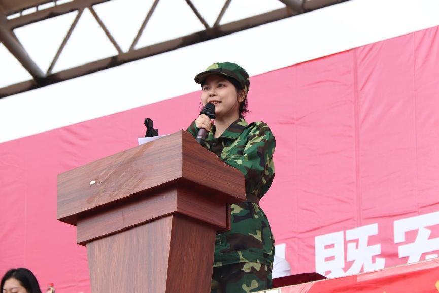 接下来,杨诗琪作为新生军训员进行发言,她指出新时代青年要以崇高理想引领专精之学,助推实现中华民族伟大复兴之梦;要以虔诚之心与务实之行投身专精之学,为学校的“双高建设”贡献青春力量。