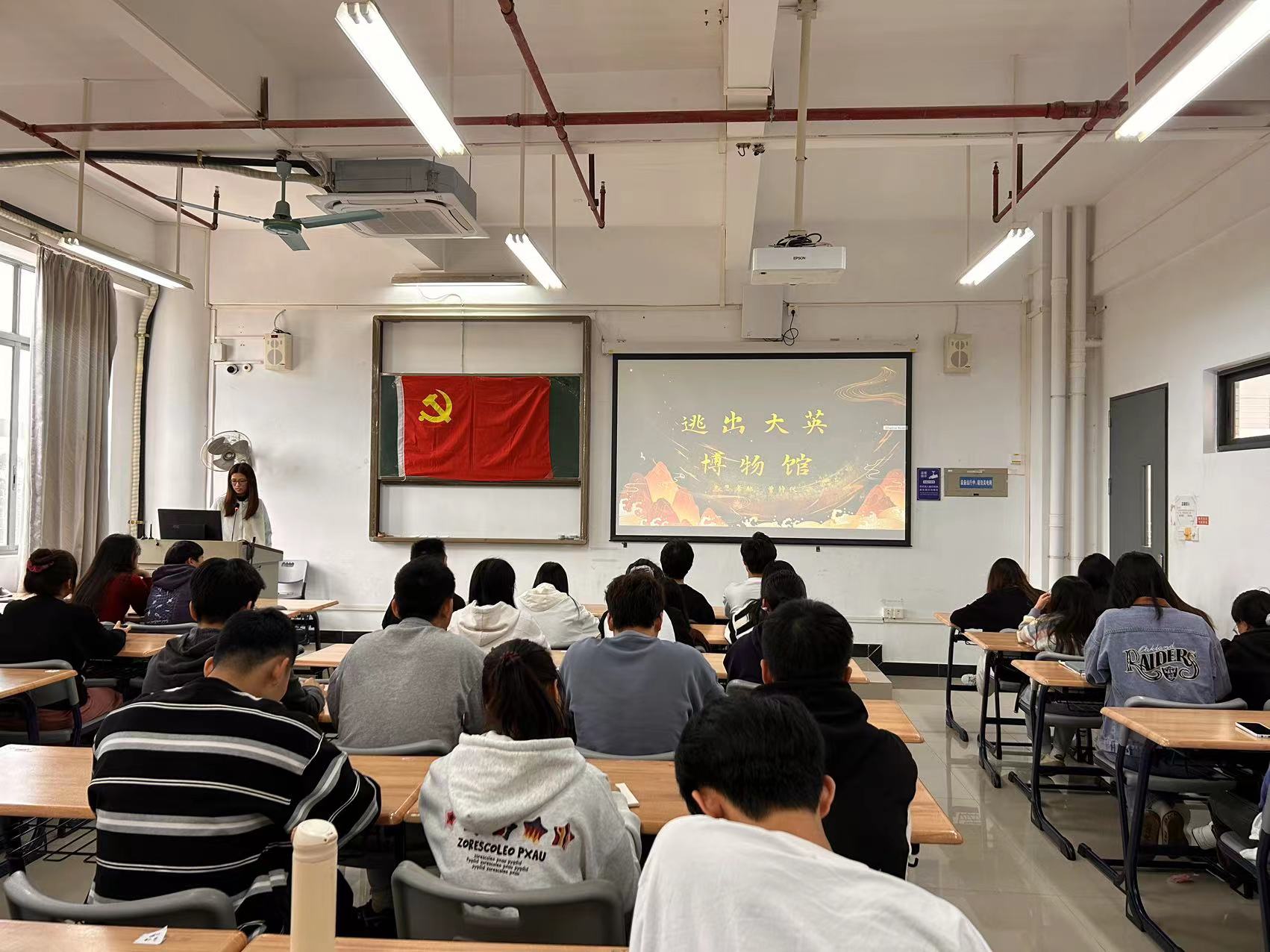 曾静仪分享短剧《逃出大英博物馆》 最后,曾静仪同志分享短剧《逃出大英博物馆》,带领大家回顾了历史的画卷:在那个时代,清政府腐败无能,当时的中国承受了难以想象屈辱和伤害,众多的文物也是在那个时代开始流亡海外。作为当代大学生,我们应知吾辈青年之未来,与国家之命脉同频共振,“吾辈当持傲霜斗雪般勇气,且与祖国同风起,扶摇直上九万里”。