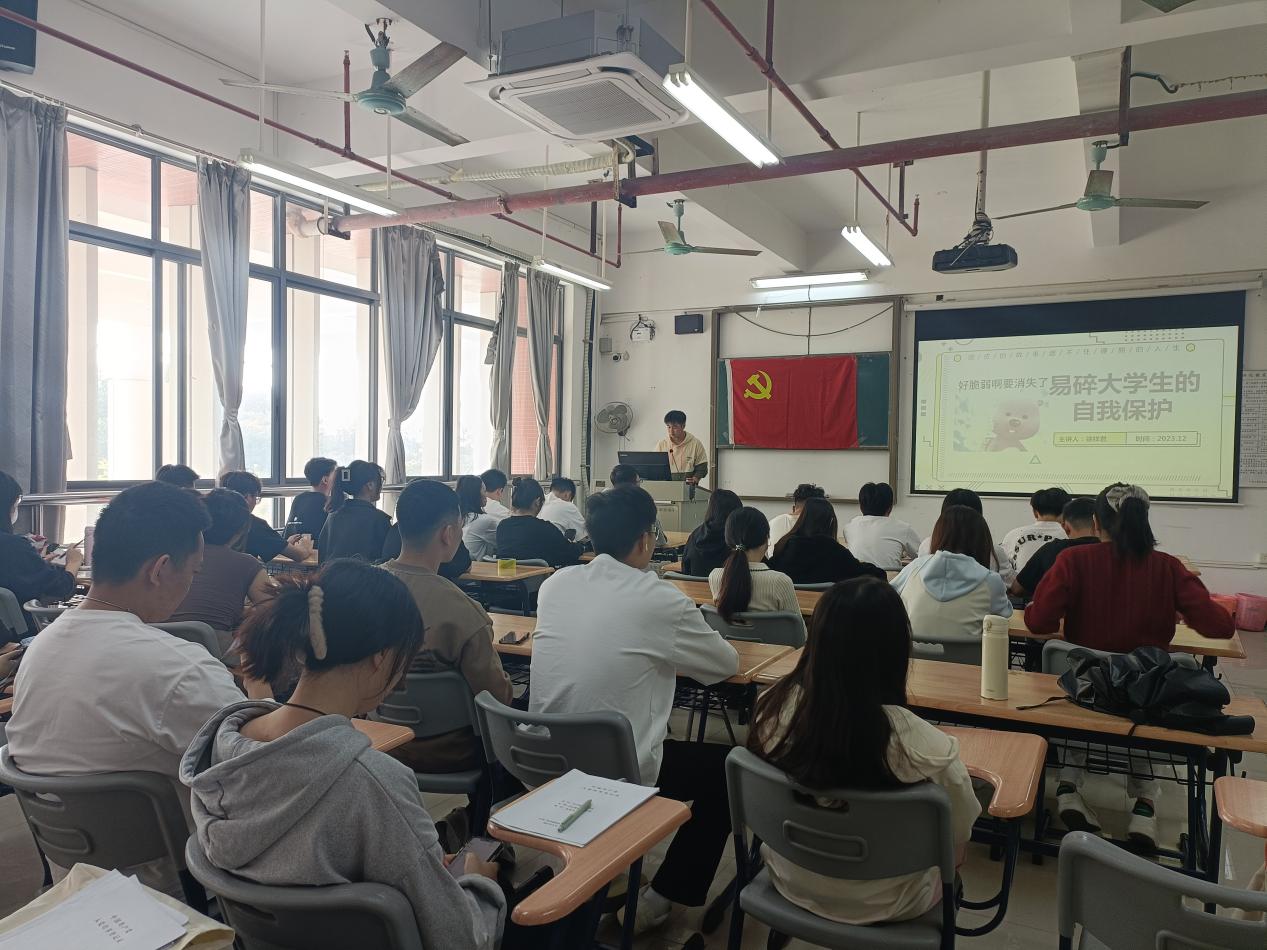 随后,徐样君同志向大家介绍了易碎大学生的自我保护。他从近日大学生容易受到伤害的事件作为案例引入,分析了当代大学生容易受到伤害的原因,并向大家分享应该如何成为一个健康、有活力的大学生的各种方法。