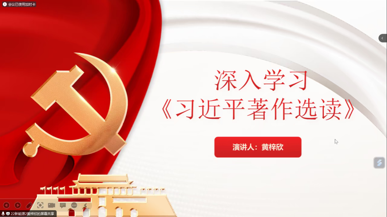 为深入学习贯彻习近平新时代中国特色社会主义思想,推动学习贯彻往深里走、往实里走、往心里走,引导党员不断筑牢信仰之基、补足精神之钙、把稳思想之舵,12月28日晚上,汽车工程学院学生党支部开展了以学习《习近平著作选读》为主题的学习分享会。此次会议由支部党员孙泽淇主持,支部书记刘彩云和在校党员参加了此次会议。