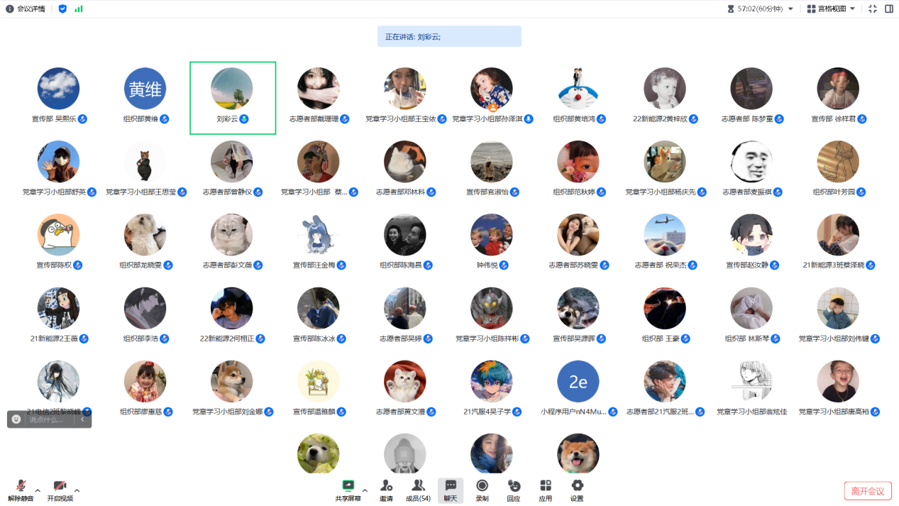 学生党支部书记刘彩云发言