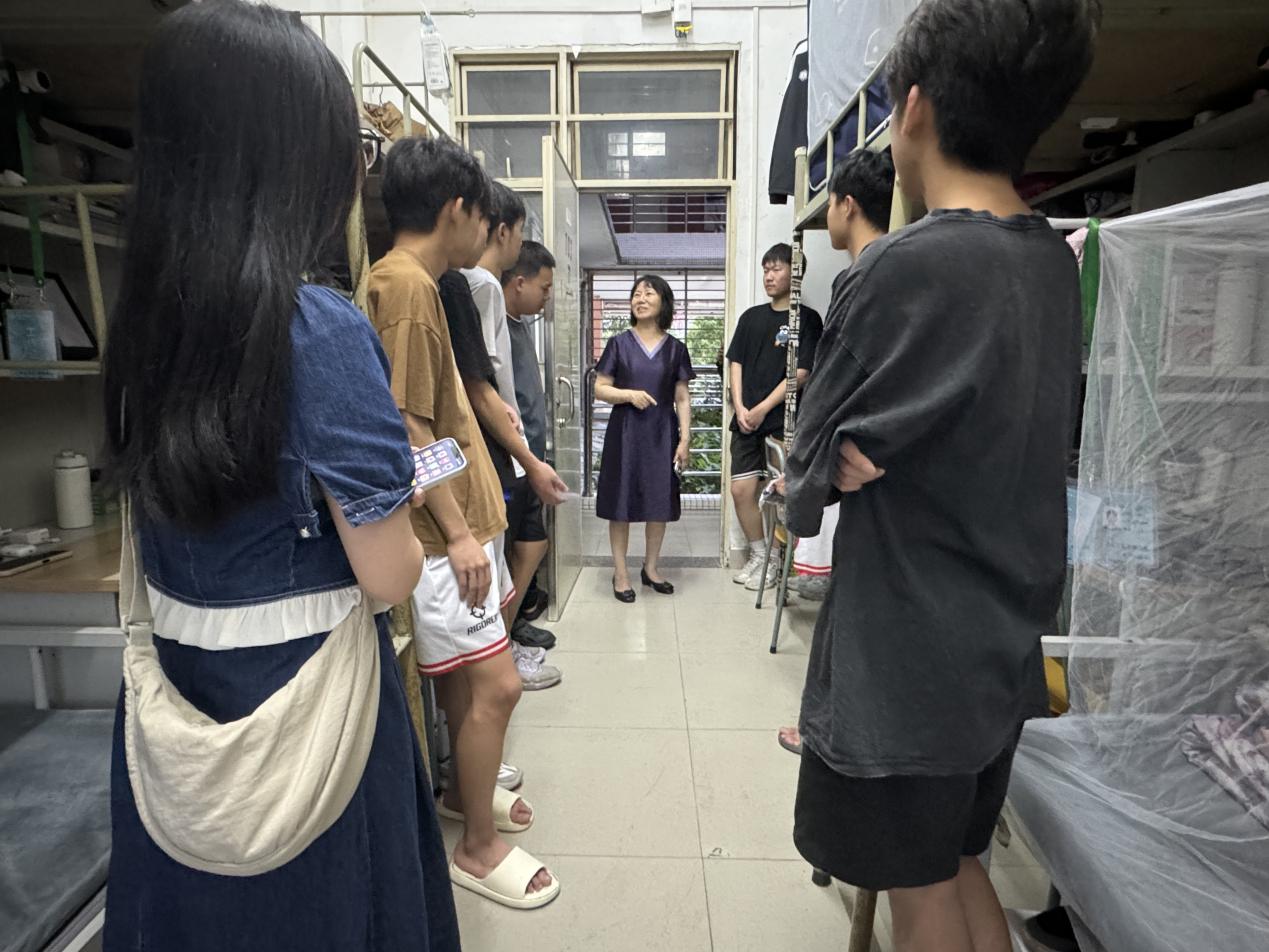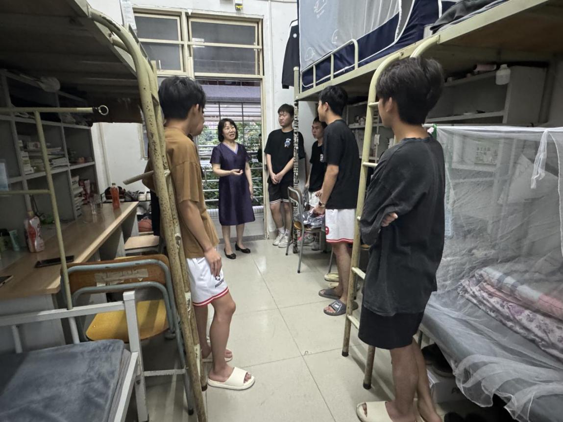 为推进“一站式”学生社区建设,落实学校领导进社区的工作要求,深入了解学生学习生活状况,掌握学生思想动态,聆听学生心声,进一步做好学生教育管理与服务,2024年5月10日晚,学校副校长赵红深入汽车工程学院学生宿舍进行走访,了解学生的学习生活状况,汽车工程学院辅导员詹琪琪陪同走访。