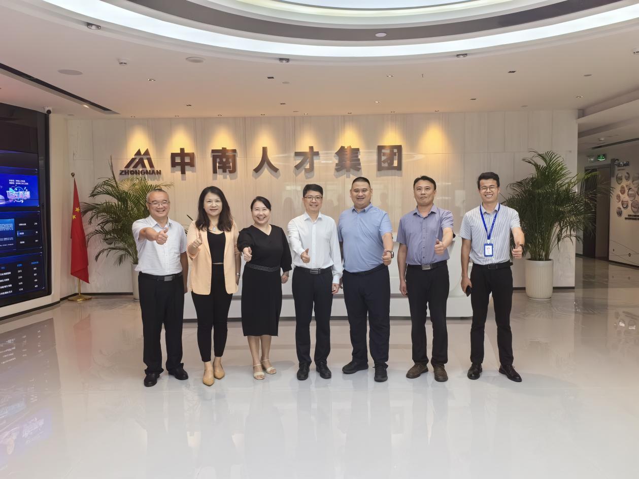 在中南人才集团运营总监黄威的带领下,徐勇军一行参观了集团办公场所、大数据平台、企业文化墙等。