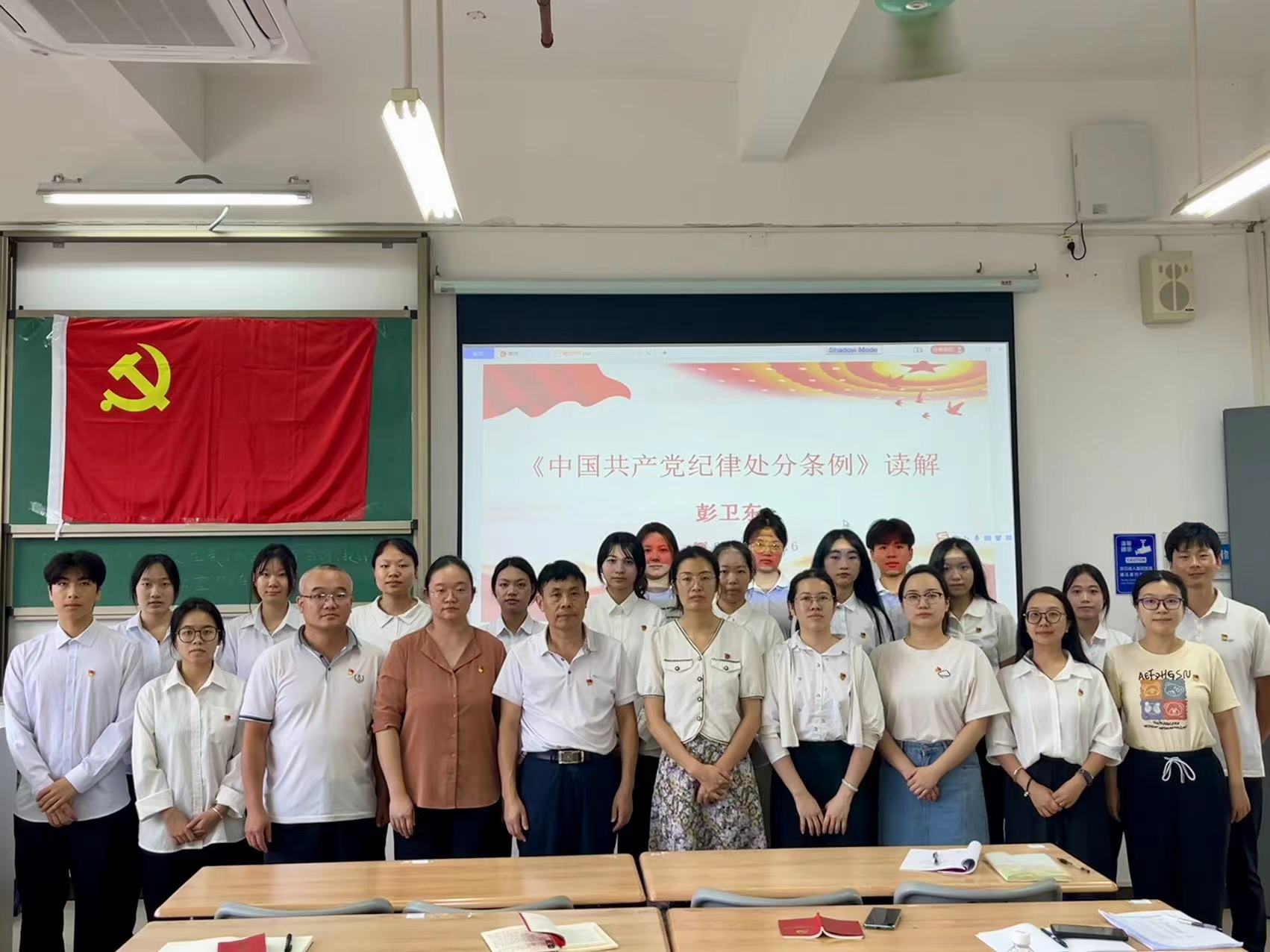 为进一步学习《中国共产党纪律处分条例》,巩固加深党员的纪律意识,明确党员在党纪中的“可为与不可为”,做到“学纪、知纪、明纪、守纪”。 汽车工程学院于6月18日下午在明德楼1-506开展党纪学习教育专题党课。汽车工程学院党总支书记彭卫东主讲,学生党支部书记刘彩云、汽车工程学院学工办辅导员以及全体在校党员参加了此次学习。