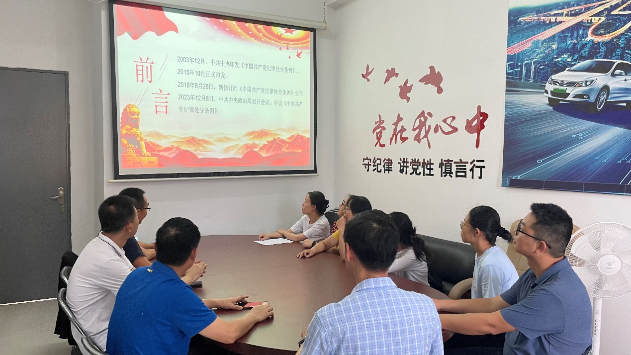 会议现场 侯益坤同志首先讲解了《中国共产党纪律处分条例》修订的历史背景、修订的主要内容、特色和亮点,修订《条例》的目的和意义等相关内容。他强调《条例》是中国共产党为了加强党的建设,保持党的先进性和纯洁性,维护党的团结统一,确保党始终成为中国特色社会主义事业的坚强领导核心而制定的一部重要党内法规。该《条例》是党的纪律建设的总章程,是党的纪律检查工作的重要依据,也是全体党员必须遵守的行为规范。《条例》的制定和实施,旨在通过明确党的纪律要求,规范党员的行为,严肃党的纪律,纯洁党的组织,保证党的路线方针政策得到贯彻执行,维护党的集中统一和团结统一,增强党的创造力、凝聚力和战斗力。其次,他强调推动智能网联汽车系高质量发展要从党建、专业的人才培养方案、实训室建设、师资队伍建设、校外实习基地的建设和课程改革、科研工作等多方面进行,要充分发挥党员的先锋模范作用,全系教师共同参与才能将这一工作做好。