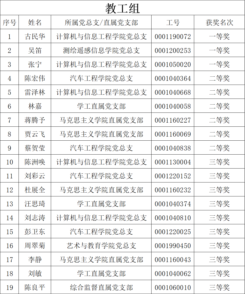 为深入学习贯彻习近平新时代中国特色社会主义思想和党的二十大精神,贯彻落实习近平总书记关于抓好青少年党史学习教育的重要指示精神,推动党史学习教育常态化长效化,庆祝中国共产党成立103周年,学校于2024年6月-7月开展了“学党史铸心魂,颂党恩建新功”党史知识竞赛。该比赛由学校关工委、组织统战部、党委宣传部、学生工作部、团委、马克思主义学院主办,汽车工程学院党总支承办。 本次比赛分为学生组和教工组两个赛道,共有840名学生和教工选手积极参与。经过激烈的答题比拼,每个赛道共产生一等奖3名、二等奖6名、三等奖10名,具体获奖名单公布如下: