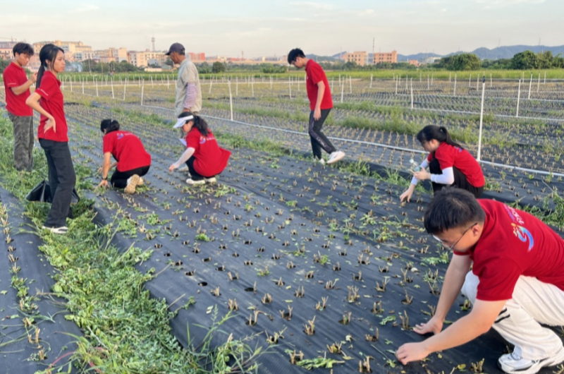 梦想起航队员们在田间劳作 童趣满盛夏,支教普新篇 服务队队员们在新和学校开展了为期四天的支教课程,开设以非遗漆扇制作、手语教学、篮球运动、感恩教育、禁毒宣传绘画、心理健康教育等为主题的课程活动。支教活动不仅让孩子们领略到传统文化的独特魅力,激发他们对运动与团队精神的热爱,更在他们心中种下了感恩、责任与担当的种子。