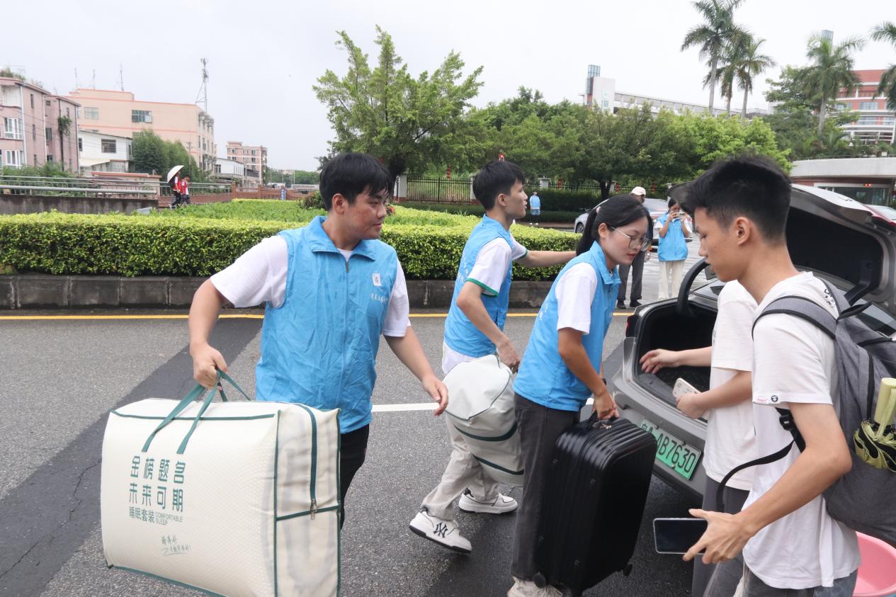 志愿者开展迎新服务 汽车工程学院迎新现场如火如荼,井然有序,工作人员各司其职,各部门相互配合、默契满满,学院组织志愿者、党员、易班、院团委学生会成员,在校园门口、迎新车辆接待处及学院报到处等站点,为新生搬运行李、细致引导,认真热情地做好志愿服务工作。