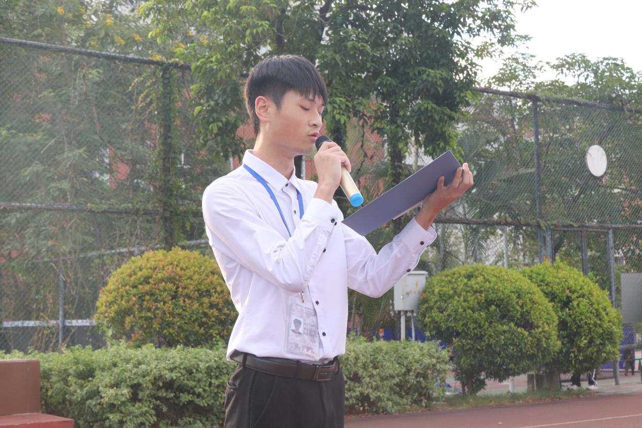 随后,学生代表黄鸿奋进行国旗下讲话:作为新时代的青年学子,我们要学习贯彻党的二十大精神和党的二十届三中全会精神,深刻领悟“两个确立”的决定性意义,增强“四个意识”、坚定“四个自信”、做到“两个维护”,统一思想和行动。站在新的历史起点上,我们要以更加昂扬的斗志、更加饱满的热情、更加扎实的作风,积极投身社会实践,用实际行动践行青春誓言。在实现中华民族伟大复兴的征途上,我们要树立大局意识、团结意识,携手并进,书写壮丽篇章!