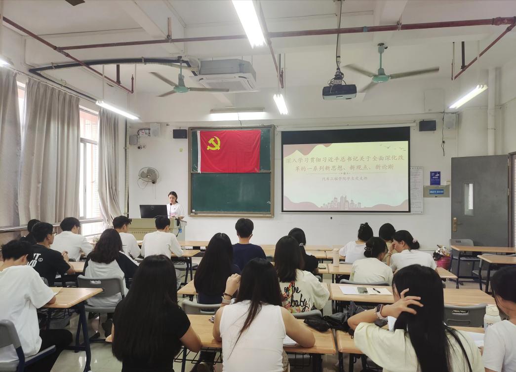 为深入学习贯彻习近平总书记关于全面深化改革的重要论述,全力以赴抓好全会精神贯彻落实,提升支部党员党性修养,汽车工程学院学生党支部于11月14日下午在明德楼1区312开展以“深入学习贯彻习近平总书记关于全面深化改革的一系列新思想、新观点、新论断”为主题的党史学习微课堂。此次党课由蔡光煜主持,汽车工程学院学生党支部书记刘彩云以及全体在校党员参加了本次学习。