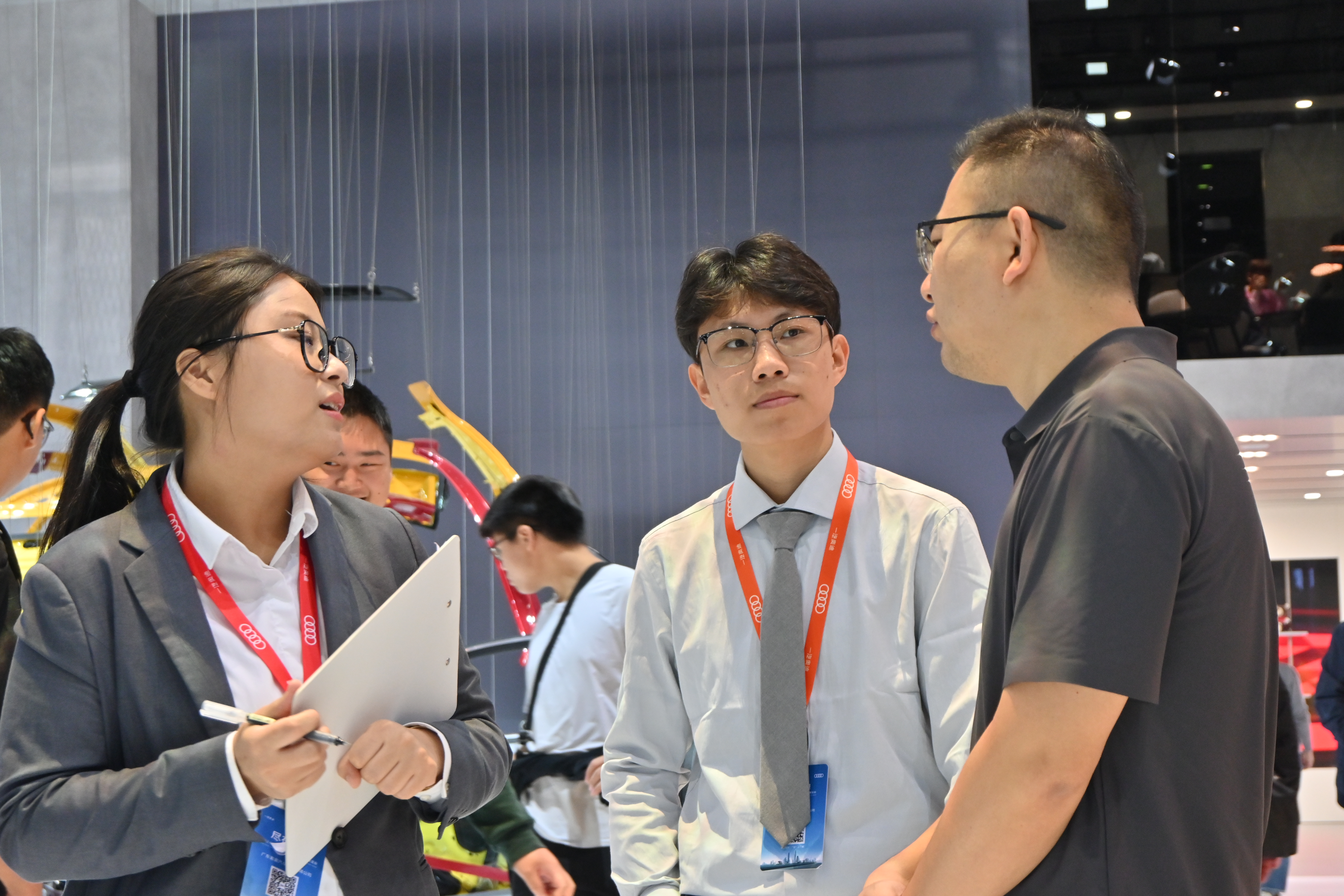 在展览会期间,王锋、张东霞、甘俊旗等老师陆续到车展现场看望学生,了解学生的实训开展情况,耐心询问他们的工作内容、遇到的挑战以及困难。对于学生们提出的问题和困难,老师们都凭借丰富的经验一一给予了针对性的指导和建议。同时,老师们也与企业进行了深入交流,一方面了解学生的实践表现和存在的不足,另一方面也能够获取行业对于汽车专业人才的最新需求和期望,为学院后续的教学改革和人才培养优化奠定基础。