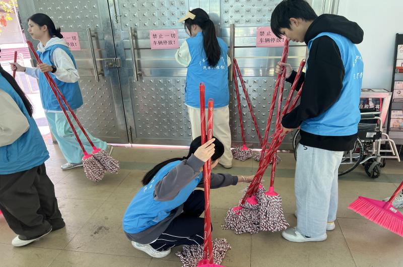 当天下午,志愿者们准时到达集合地点,统一服装整装待发,在负责人讲解完注意事项后,一同前往湴湖村。清扫过程中,志愿者们穿梭在活动中心的各个角落,认真清扫地面、擦拭桌椅及拖洗地板,井然有序地进行每一个环节,确保所有细节都不遗漏。在志愿者的辛勤劳动下,湴湖村活动中心焕然一新,负责人清点完工具数量并归还原处。最后,志愿者们以大合照的形式结束了本次志愿活动。
