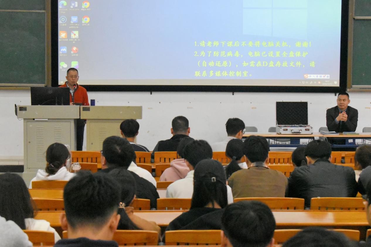 宣讲伊始,东莞市泓晟橡胶制品有限公司董事长陈金文向同学们介绍了公司的基本情况、企业文化以及自己创办公司的心路历程。陈金文在交流中表明自己也是一名工程师,他以自身的职业经历和感悟为切入点,详细讲述了为何要招聘汽车工程学院的人才。他认为,汽车工程学院的学生们经过系统的学习和实践训练,具备扎实的理论基础、精湛的专业技能和创新的思维能力,能够快速适应企业的工作需求,为企业的发展注入新的活力。