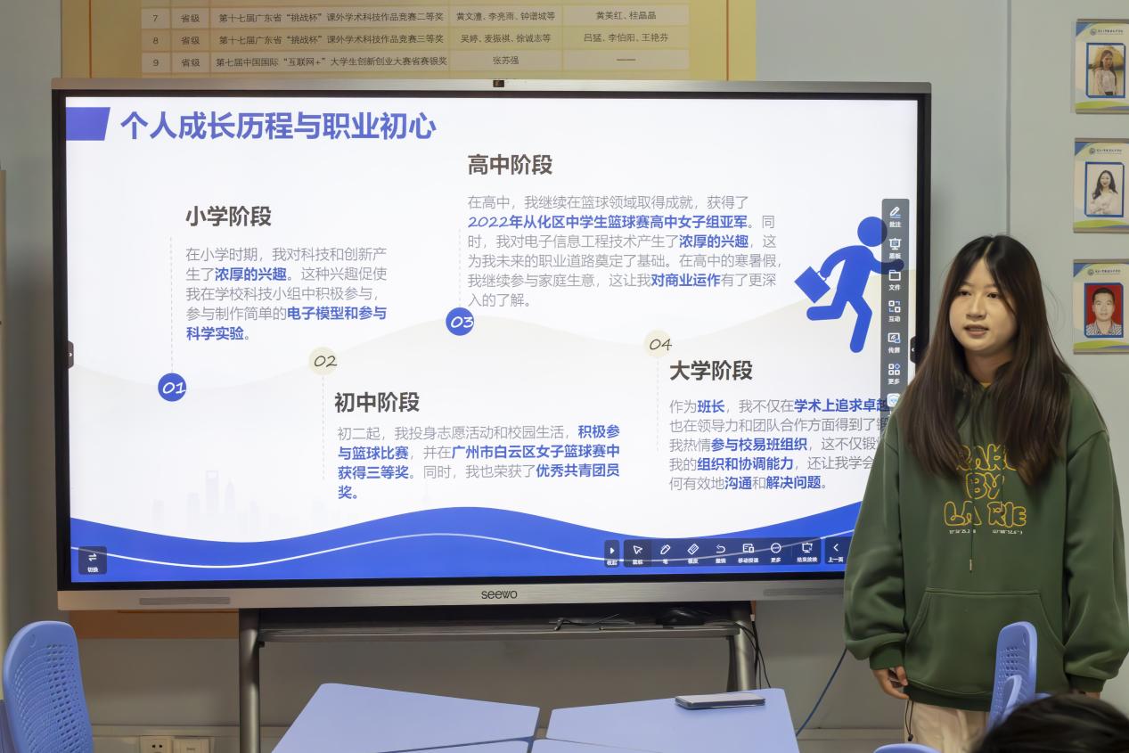 本次职业规划大赛院级复赛,分为成长赛道和就业赛道进行,学院依照比赛要求,秉持严谨公正的态度开展评审筛选工作,共有10名选手脱颖而出晋级本次复赛。比赛现场,选手们结合自己的专业知识和个人兴趣,提出了富有创新性与可行性的职业规划方案,展现出了良好的职业素养与卓越的才华,他们的表现赢得了现场评委的高度认可以及观众的热烈掌声。