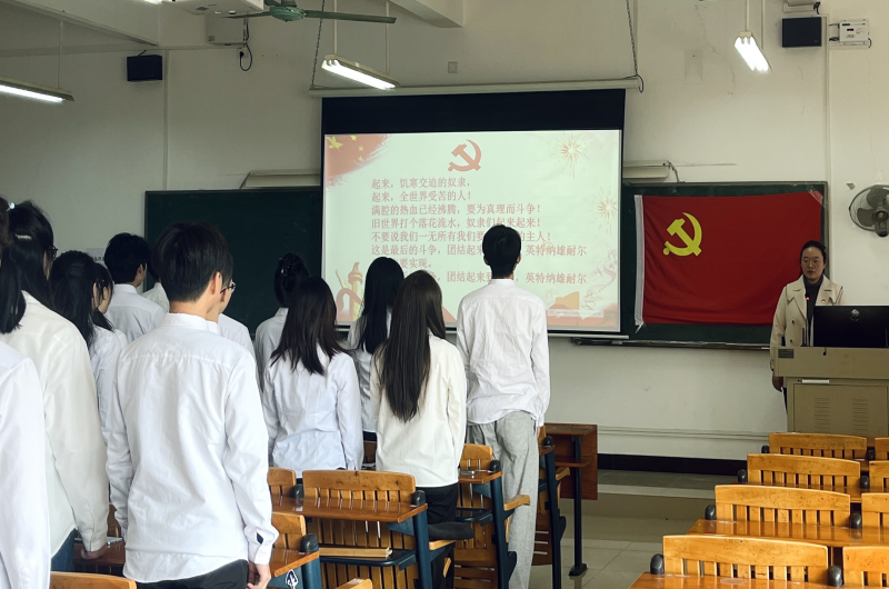 刘彩云主持 会议伊始,首先由刘彩云宣读参加宣誓仪式的党员名单。随后,仪式在雄壮的《国际歌》音乐声中拉开序幕。全体党员起立,目光坚定,神情肃穆,共同奏唱着这首象征着革命精神和共产主义理想的伟大歌曲。这首歌曲承载着厚重的历史,它曾激励着成千上万的劳动者和进步人士投身于争取权益与推动社会发展的伟大事业,激励着一代又一代的共产主义者们奋勇向前。