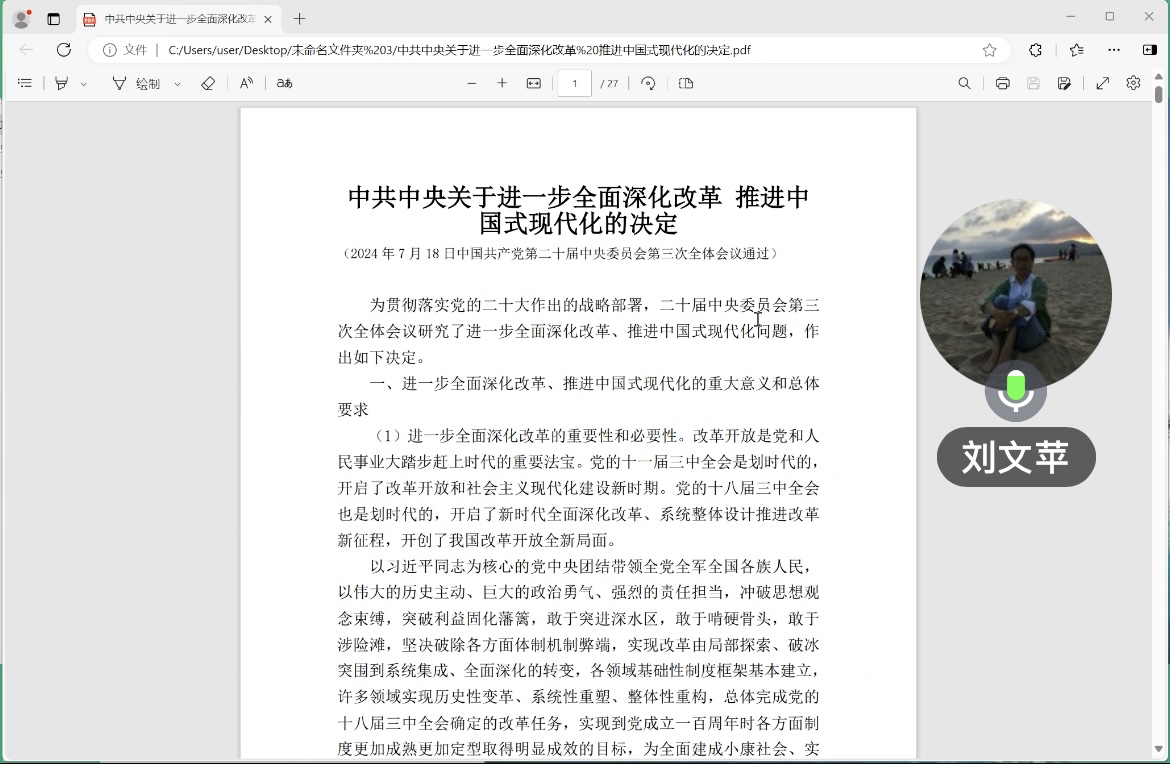 刘文苹带领学习《中共中央关于进一步全面深化改革、推进中国式现代化的决定》