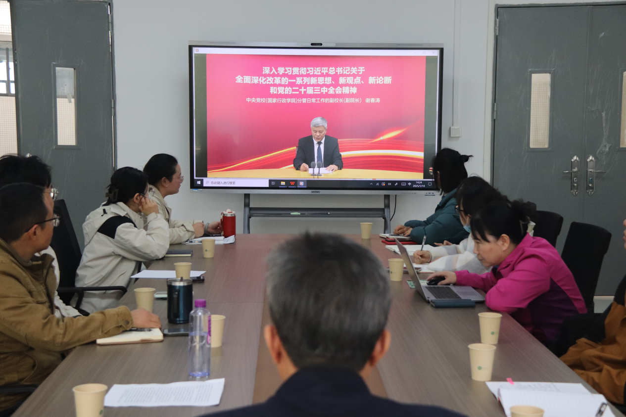接着,全体教职工党员集中观看了由中共中央党校(国家行政学院)分管日常工作的副校长(副院长)谢春涛主讲的《深入学习贯彻习近平总书记关于全面深化改革的一系列新思想、新观点、新论断和党的二十届三中全会精神》,该课程主要围绕党的二十届三中全会精神,阐明了进一步全面深化改革的重要指导思想和根本行动指南,详细解读了进一步全面深化改革的主题和原则,以及各项重要举措。旨在帮助全体党员深刻理解党的二十届三中全会精神的深远意义,全力以赴抓好全会精神贯彻落实,把党中央关于进一步全面深化改革的战略部署转化为推进中国式现代化的强大动力。