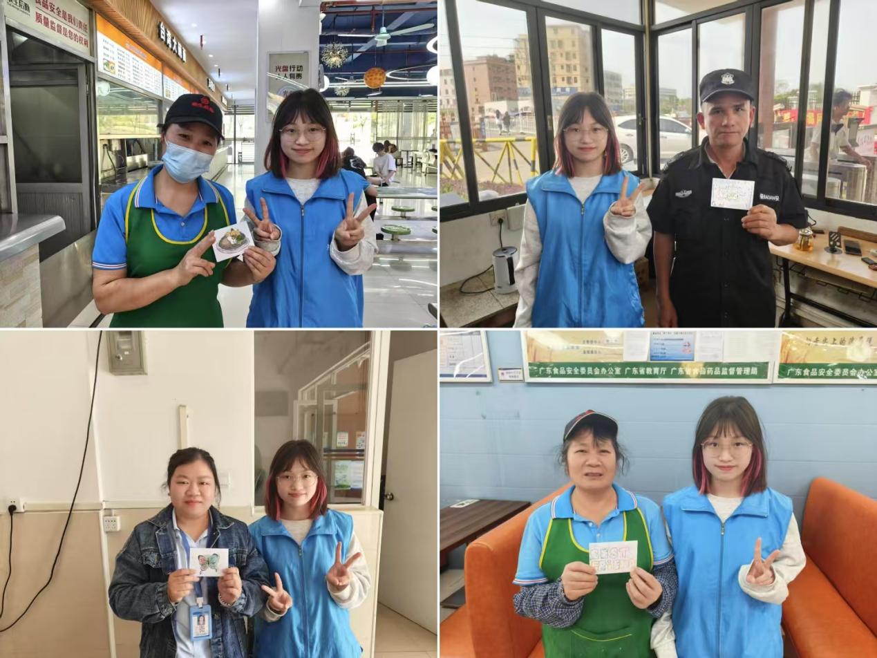活动宣传 活动伊始,志愿者指引同学们领取明信片和信封袋,认真写下对校职工的祝福与感谢话语并在信封上精心作画。志愿者们对制作完毕的明信片进行筛选整理,粘贴于展板上,吸引更多同学驻足参与。活动后期,志愿者们主动清理现场,恢复场地整洁并对挑选出的优秀信封作品和明信片进行统一整理,方便后续赠予校职工。最后,本次活动以合照的形式正式落下帷幕。