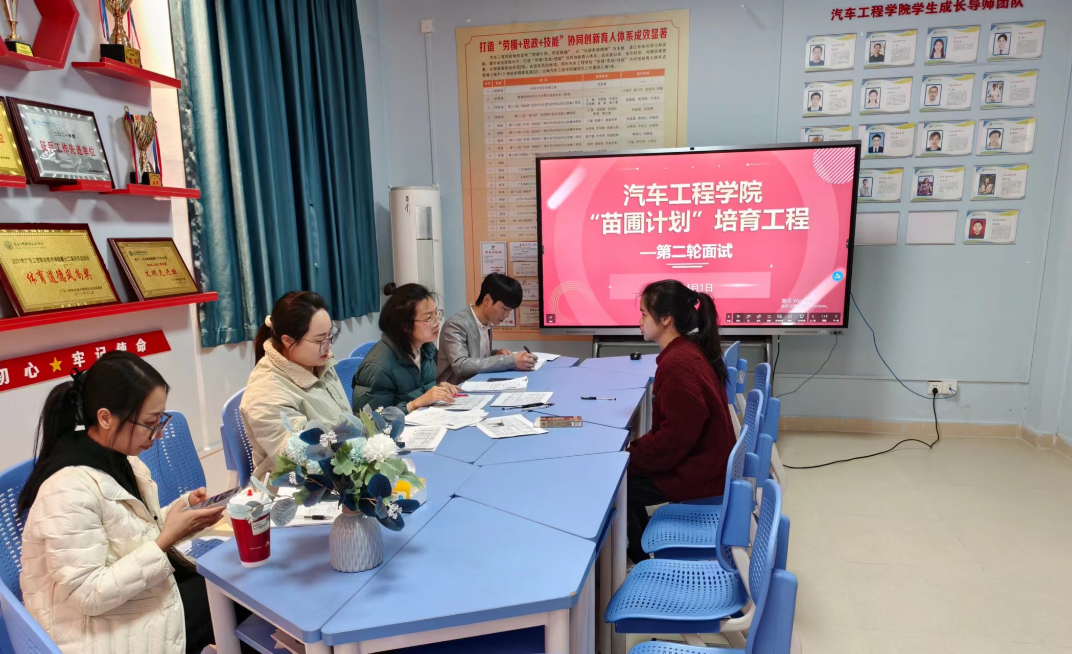 为深化学生教育管理工作改革创新,建立健全高质量的学生教育管理工作体系和长效机制,实现汽车工程学院人才培养工作高质量发展。2025年4月1日下午14:00,汽车工程学院在班主任工作室开展“苗圃计划”培育工程第二轮面试。汽车工程学院学工办全体辅导员参与面试。