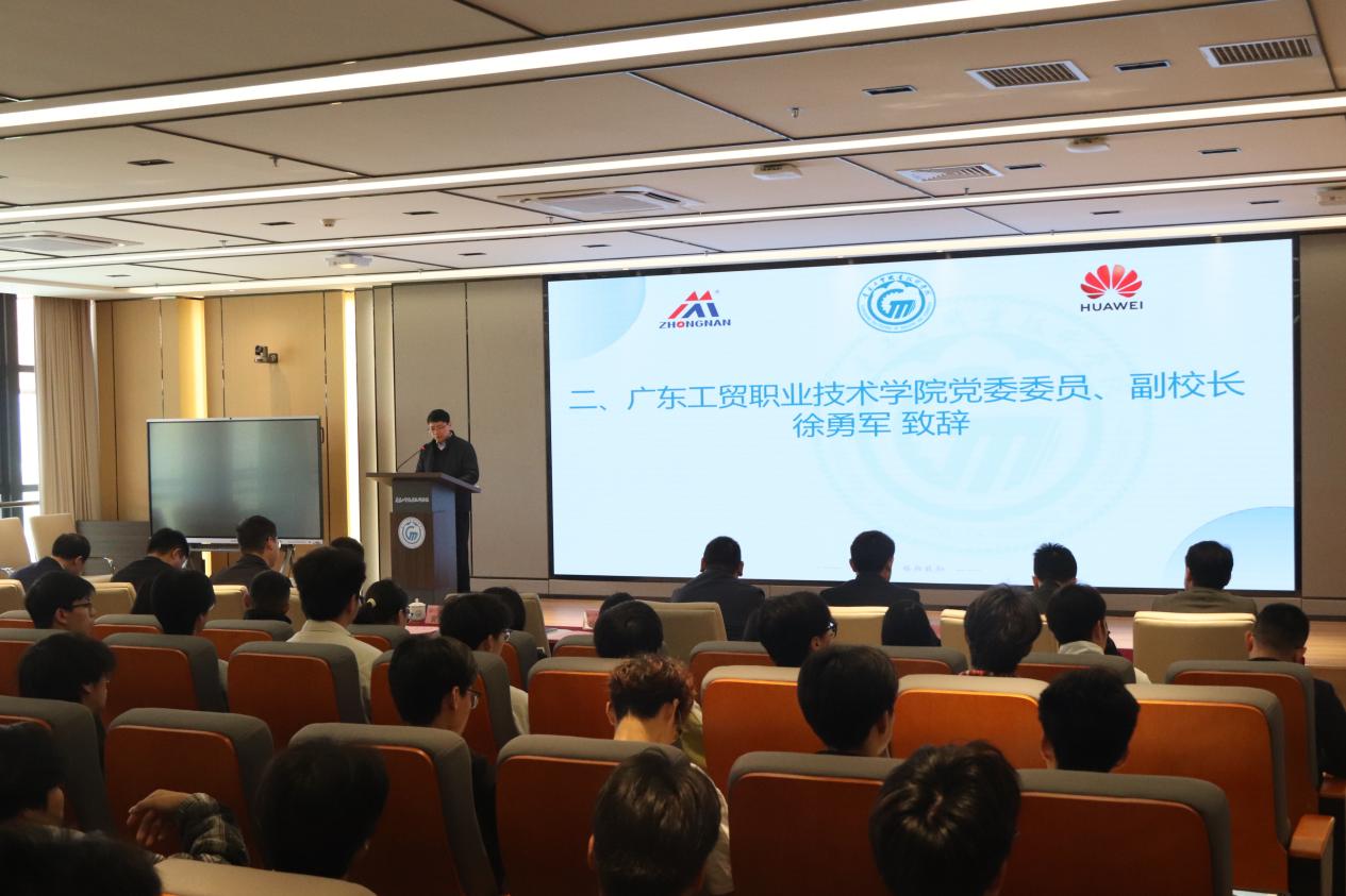 会议现场 启动仪式上,徐勇军代表学校对中南教育科技(深圳)有限公司、华为机器制造有限公司的鼎力支持表示感谢。强调学校坚持服务广东制造业当家战略,精准对接大湾区“两新一数一智产业”,坚持校企合作、产教融合,培养高端技术技能型人才。徐勇军寄语订单班的同学们,要紧紧抓住校企协同培养的宝贵机遇,锤炼岗位技能,并提出三点期望:一是铸匠心。传承我校“寻真求是、格物致知”的精神内核,在联培项目实训中精益求精,争做行业技术“尖兵”;二是强创新。对标华为“敢为天下先”的科技基因,在校企技术技能创新平台上大胆探索,成为技术创新“先锋”;三是担使命。践行我校培养有“世界眼光”的高端技术技能人才的使命,将个人成长融入国家“制造强国”战略,用技能书写青春华章。