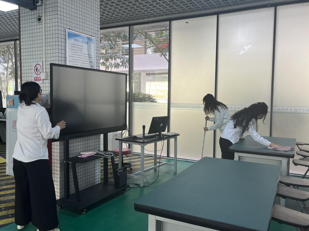 打扫教室 预备党员们以躬身力行的姿态,为师生们打造整洁舒适的学习环境,让理论学习在劳动实践中焕发蓬勃生机。活动伊始,党支部召开专题培训会议,从清洁标准到安全规范进行详细讲解,明确各区域清洁重点,确保实践活动高效有序开展。随后,预备党员们在党支部的统筹安排下,分成若干小组,展开全面卫生清洁工作。活动过程中,预备党员们充分发挥先锋模范作用,展现出高度的责任感与使命感。他们分工协作,有的认真擦拭黑板、桌椅,有的仔细清扫地面、窗台,不放过任何一个卫生死角。在团队配合中下,大家相互支持、默契十足,以积极饱满的工作态度和团结协作的精神,高效完成了清洁任务,用实际行动诠释了对党的忠诚与为人民服务的初心,为师生营造出更舒适宜人的教学环境。