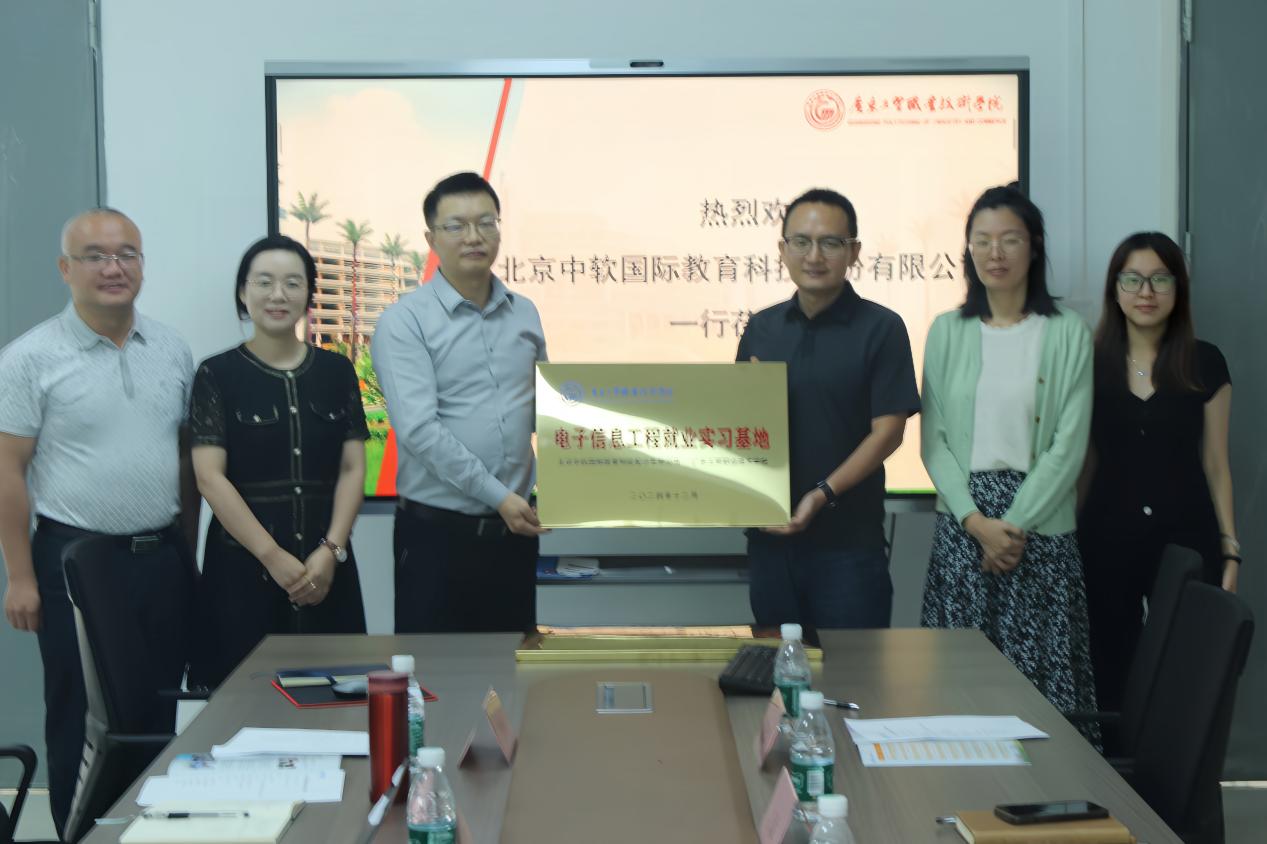 授牌仪式 最后,校企双方现场揭牌“校企供需对接人才工作站”和“电子信息工程就业实习基地”,接下来校企双方将携手合作,共同育人。 此次交流活动为双方进一步深化合作奠定了良好基础。未来,汽车工程学院与北京中软国际教育科技股份有限公司将在人才培养、课程建设、实践教学等方面开展全方位合作,共同为汽车产业培养更多高素质、创新型人才,推动行业发展与进步。