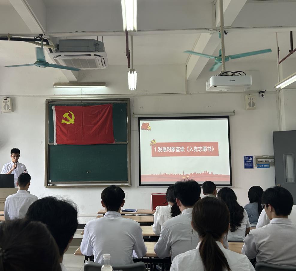 发展对象宣读入党志愿 本次会议,发展对象首先从思想觉悟、理论学习情况以及综合实践情况等方面对自身情况进行了汇报。随后,由入党介绍人对发展对象的思想、学习、生活等方面的情况进行汇报,全体与会正式党员结合发展对象的平时表现进行了讨论和审议,并提出了今后在工作和学习生活中的要求和进一步改进的意见。随后,全体与会正式党员就是否吸收为预备党员进行了无记名投票表决。最后,经支部党员大会逐一讨论表决,一致同意接收黄子浩等6名同志为中共预备党员。