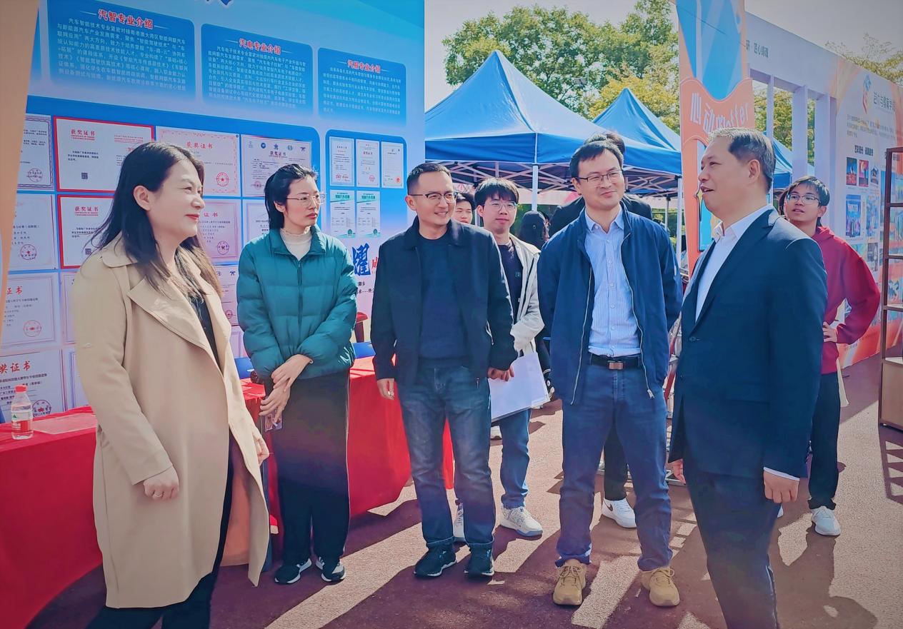 汽车工程学院党总支书记朱永平、副书记欧敏、副院长吕猛、副院长王锋等领导来到学院展位前,与现场师生亲切交流,细究教学展示成果的亮点与实践价值,并详细了解招聘会的组织筹备、服务保障等工作进展,且对现场工作人员的辛勤付出与高效执行力给予肯定。同时,他们也明确强调要持续升级服务体系、优化服务效能,构建更为优质的校企合作交流平台,以务实举措全力提升2026届毕业生就业工作质量与效率,助力学子在职业赛道上顺利起跑。