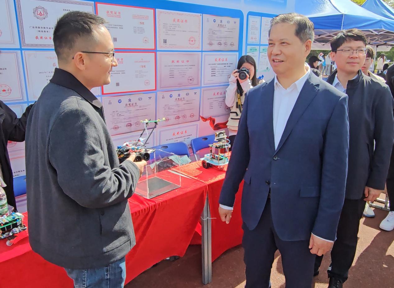此次招聘会的举办得到学校领导的高度重视,学校党委书记何汉武,党委委员、副校长唐毓秋亲临招聘会现场,并深入汽车工程学院展位进行调研指导。领导们在智能设备展示区驻足良久,认真听取学院教学成果汇报,并重点观摩了学院比赛团队自主研发的智能自动小车演示。接着,学生现场演示了智能自动小车的自动避障、精准执行任务等功能,操作流畅且响应迅速。领导们驻足询问作品的开发周期、技术难点及实际应用场景等,对学生将专业知识转化为实用成果的能力给予好评,并鼓励学子们在未来职业路上勇于开拓,以创新锐气奔赴职场。