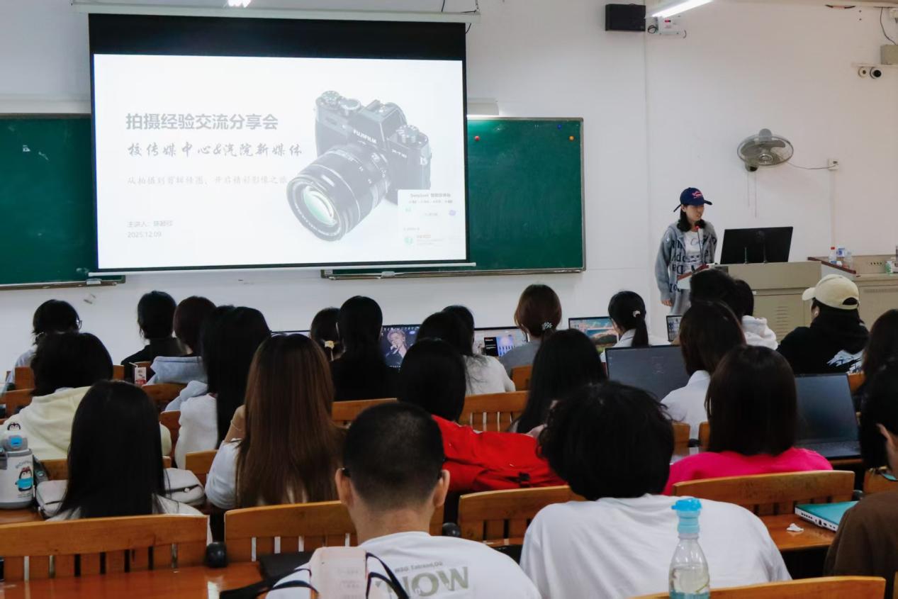 陈颖欣分享现场 活动中,汽车工程学院学生积极提问,校传媒中心同学现场答疑,形成了良好的互动交流氛围。在随后的实践环节中,两个部门的同学混合编组、协作拍摄,校传媒中心成员发挥专业优势进行实地指导,汽院学生则结合学院活动特点提出拍摄构思,双方在共同实践中深化理解、取长补短。