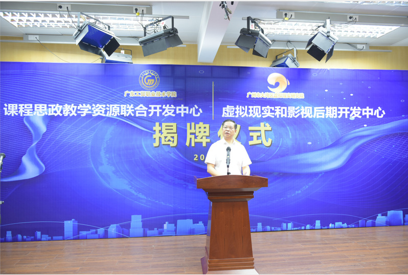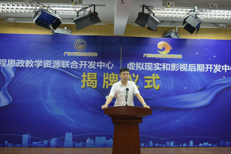 何汉武校长指出,科技进步和产业变革是当前世界百年未有之大变局中重要的基础力量和推动力量,虚拟现实技术是现代科技变革的重要内容,是认识世界的新方法,未来必将深刻改变人类的生产生活方式,改变产业形态、产品形态和服务模式。学校要深刻把握发展机遇,深入探索虚拟现实技术,积极应对数字经济和智能产业的快速发展。要依托“虚拟现实双师素质培养培训基地”和“虚拟现实工程数字教育协同创新中心”两个国家级平台,极力打造虚拟现实研发团队,打造虚拟现实应用技术专业群,推进融合虚拟现实和VR技术的仿真教学“四个一”双高计划。此次与广州市大湾区虚拟现实研究院成立“虚拟现实和影视后期开发中心”和“课程思政教学资源联合开发中心”,是学校党委贯彻落实省委十二届十次全会精神,扎实推进“一核一带一区”区域发展格局的重要举措,必将进一步深化产教融合、校企合作,推动VR+影视开启新的制作、观影、体验和传播,催生新的业态,推进VR+教育改变教育教学方式,促进思政教育课程改革。坚信在双方的共同努力下,将广泛汇聚资源,深化虚拟现实产业在教育教学的应用,推动虚拟技术在影视创意产业应用。期间,何汉武校长还代表学校,向广州大湾区虚拟现实研究院授牌“虚拟现实和影视特效实训基地”。
