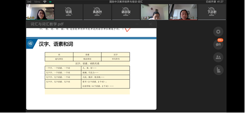 我校教师利用周末休息时间认真参加了专班组织的72学时的文件国际汉语教师证书线上培训,并于2021年4月24日和7月3日参加了由国家中外语言合作中心组织的证书笔试和面试。