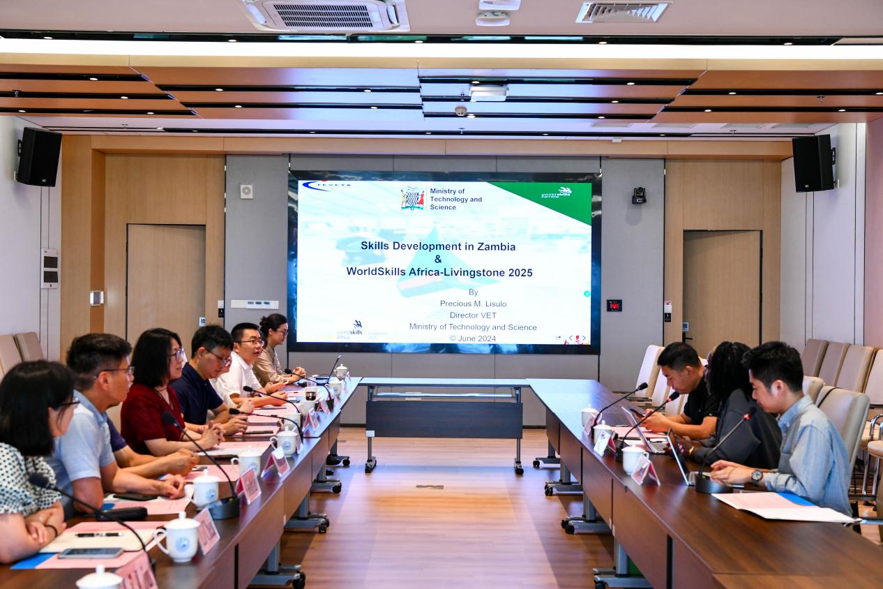 2024年6月19日上午,赞比亚科技部技能司司长伊苏洛·普瑞舍斯·穆什巴一行来访学校。学校党委书记何汉武和赵红副校长出席会议。学校校长办公室、教务处、对外交流合作处、测绘遥感信息学院、汽车工程学院及应用外语学院等负责人参会。