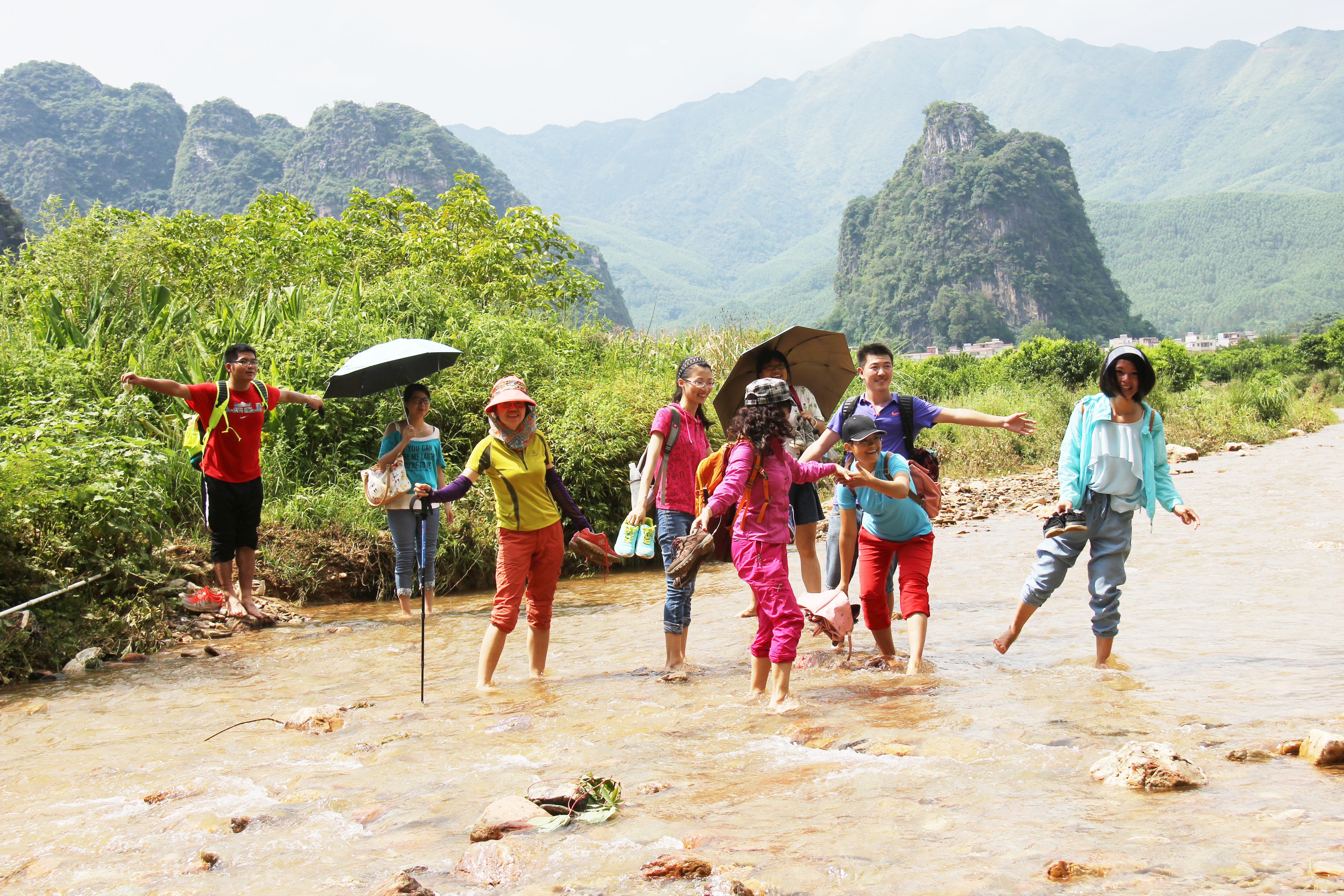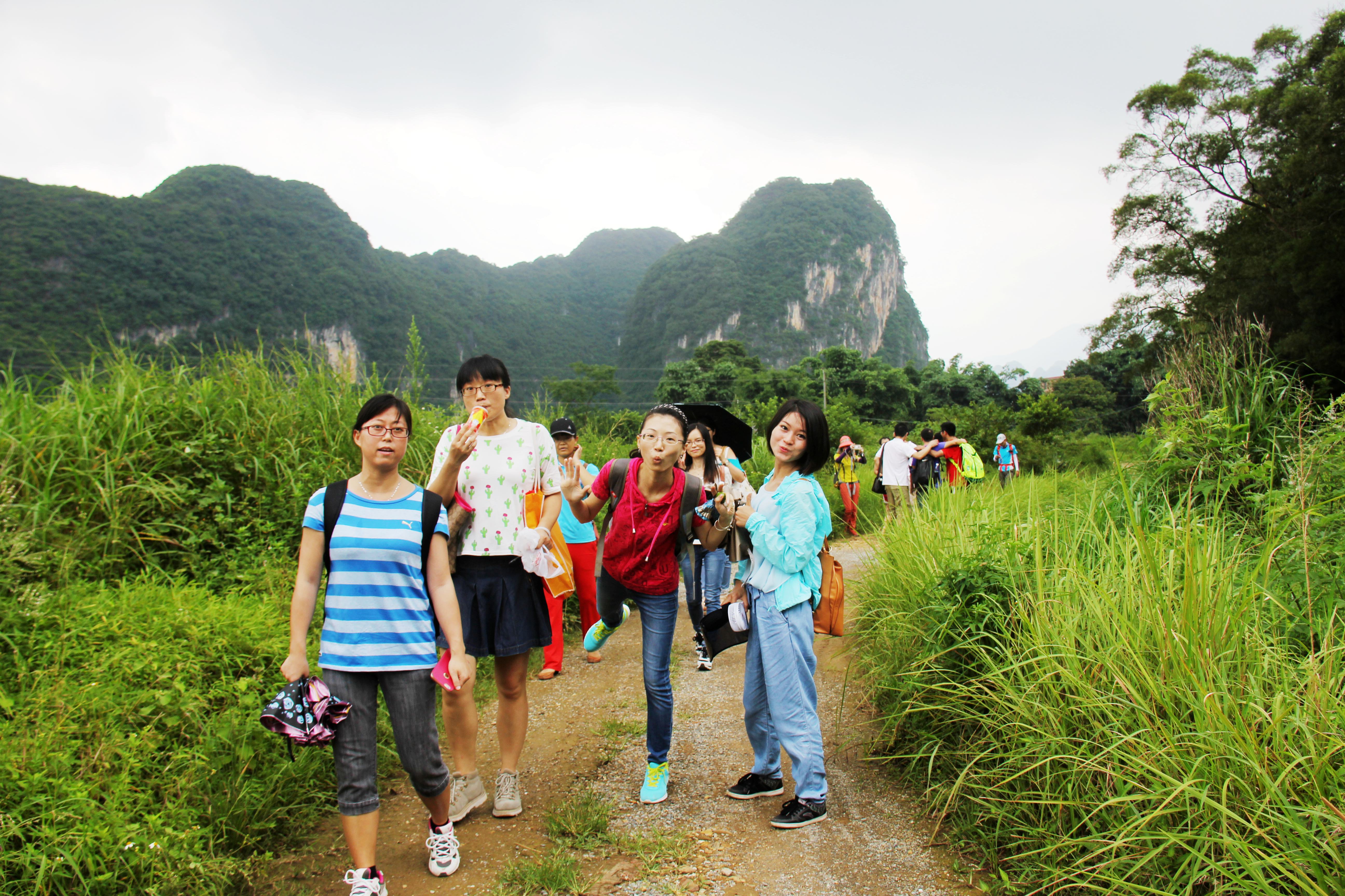 英西峰林徒步以在职教职工为主,个个精神抖擞,脸上洋溢着快乐的笑容。领队带领我们踏进杂草丛生的草地,穿行于弯弯曲曲的田间小道,行走在青山绿水之间,欣赏大自然的自然景色。一路上,大家相互交流感情,尽情舒怀,释放工作带来的压力。炎热的天气,汗水湿透了我们的衣服,大家没有退缩,迎着困难而上,经过将近5小时的徒步,通过大家的团结协作、相互支持,终于把10公里的路程征服在自己的脚下,我们的体力、毅力和承受能力经受了考验,我们感到自豪、感到骄傲,每个人脸上都露出胜利的笑容,沉浸在徒步的欢乐中。