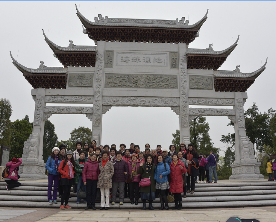 海珠湿地公园休闲游是为离退休女教职工组织的线路。离退休女教职工一边观赏着具有生态湿地特色景观和粤式广府文化景观牌坊等岭南文化特色建筑,一边互相闲聊、问长问短,呼吸清新的空气,领略具有“生态、岭南、水乡、野趣”的果园湿地特色风貌。水道环绕、小桥流水、树枝吐新芽、油菜花随风飘荡,处处弥漫着春天的气息,让离退休女教职工恋恋不舍,留连往返。